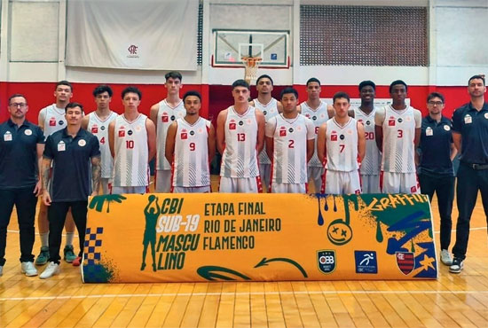 Comissão e elenco do Paulistano sub 19 no CBI, no Flamengo. Foto: Divulgação/CBB